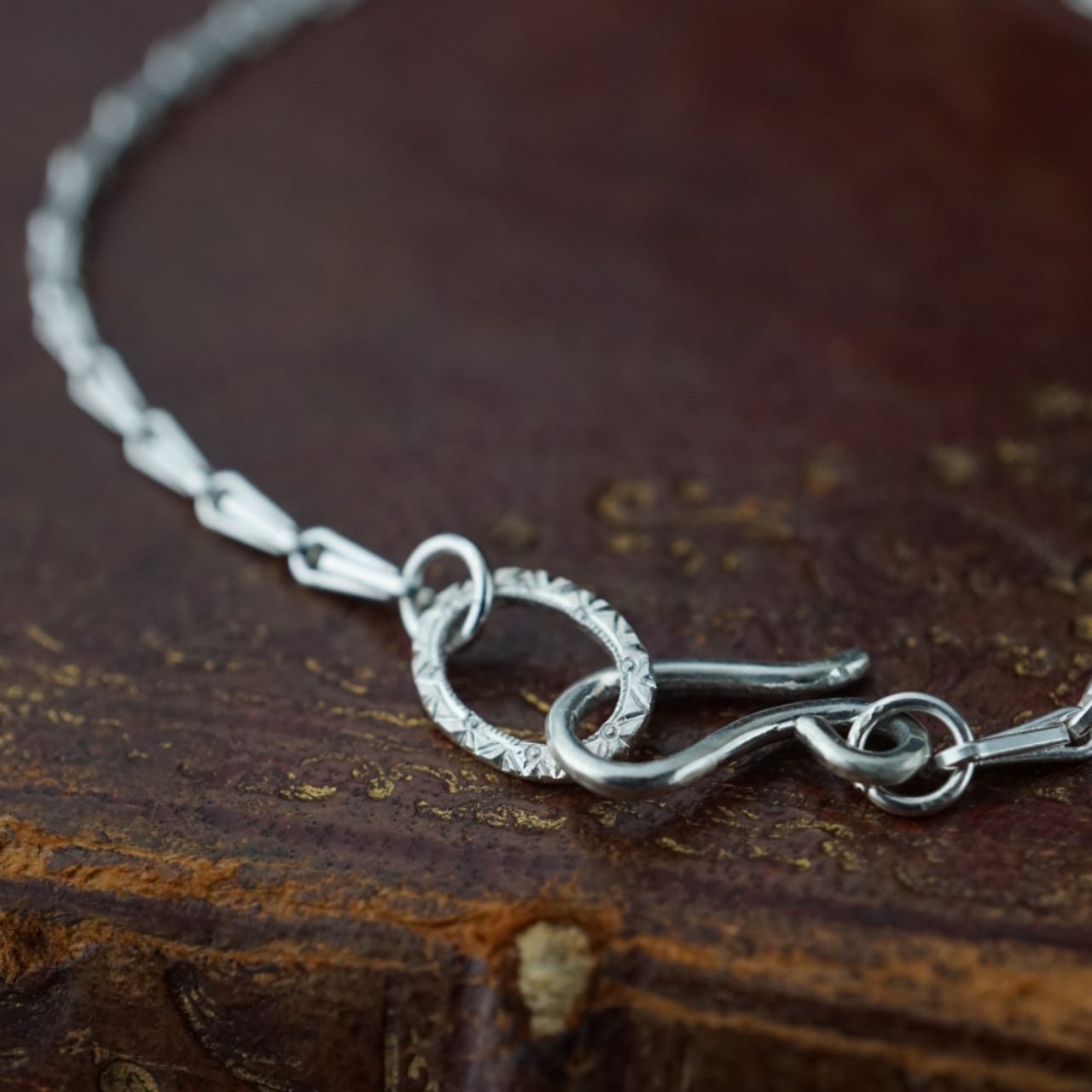 チェーン部分は、落ち着いたマットな輝きが特徴。