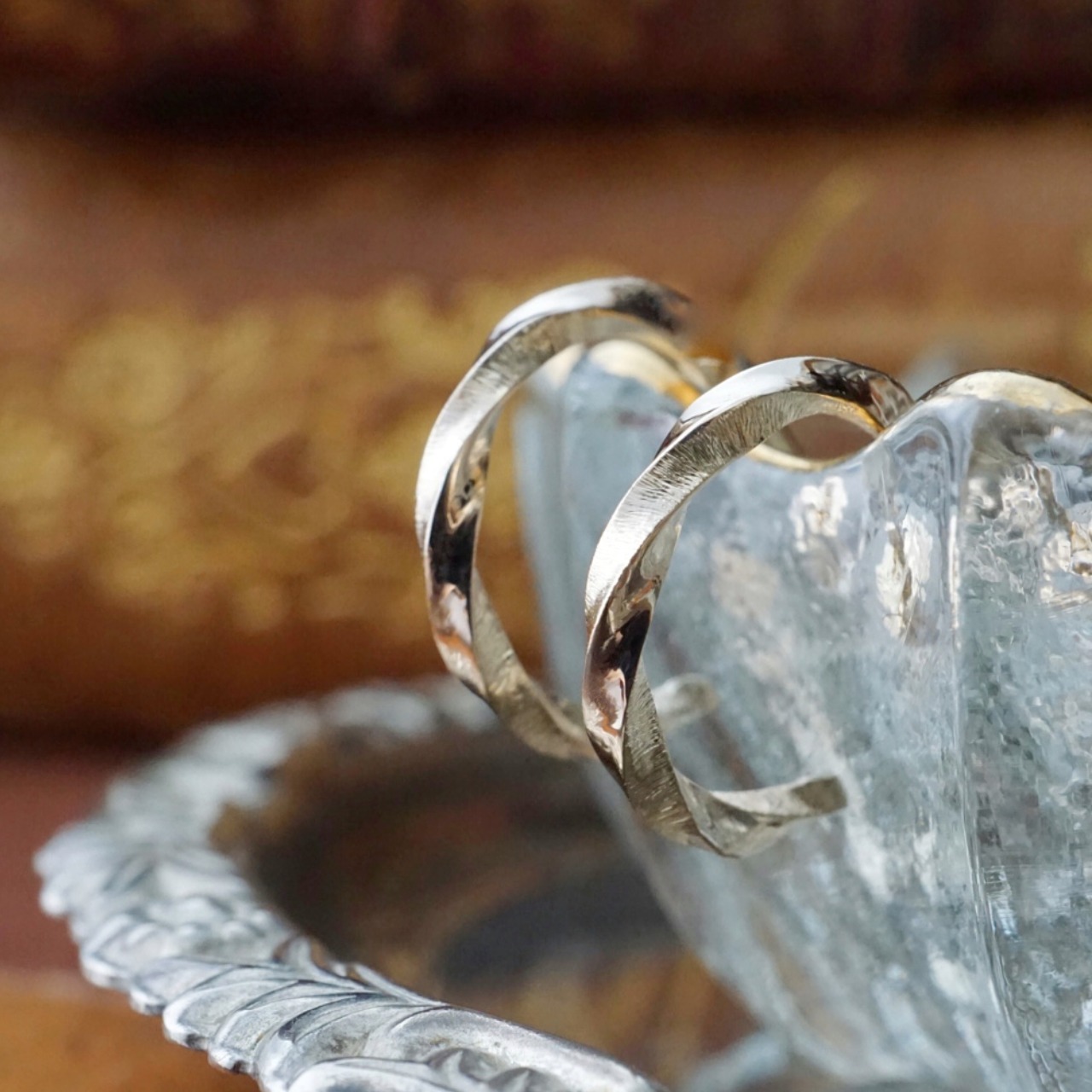 鏡面と絹のような彫りで仕上げ、大聖堂の柱の輝きをそのまま指元に閉じ込めたように仕上げました。