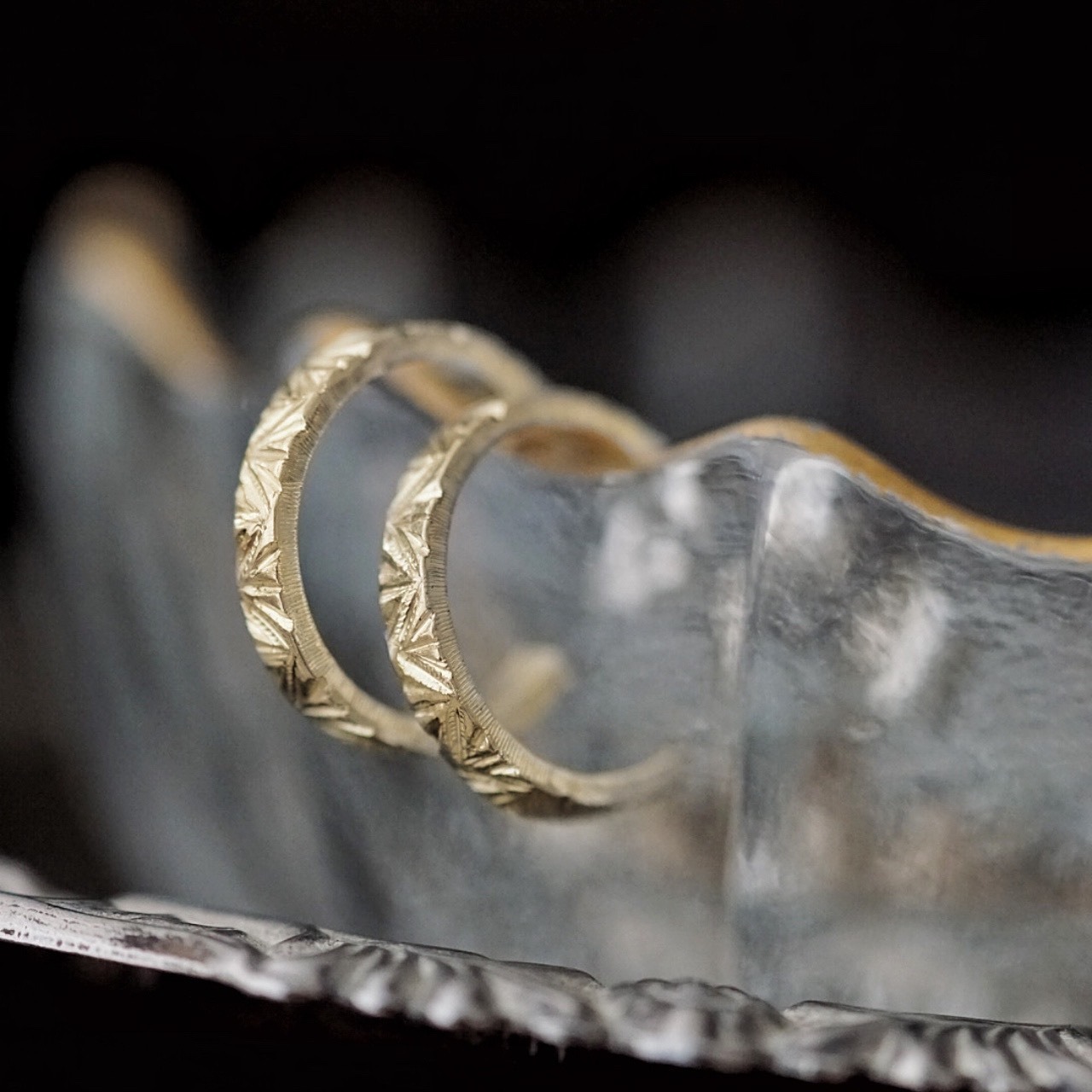 留学中ウフィツィ美術館で出逢った絵画の額縁に施された「アカンサスの葉」をリングに刻み込みました。