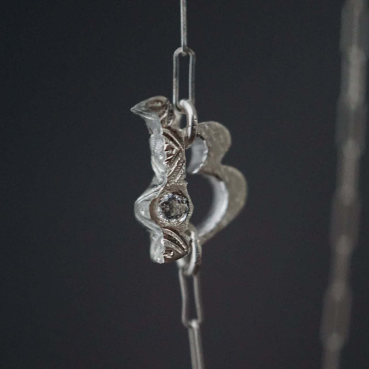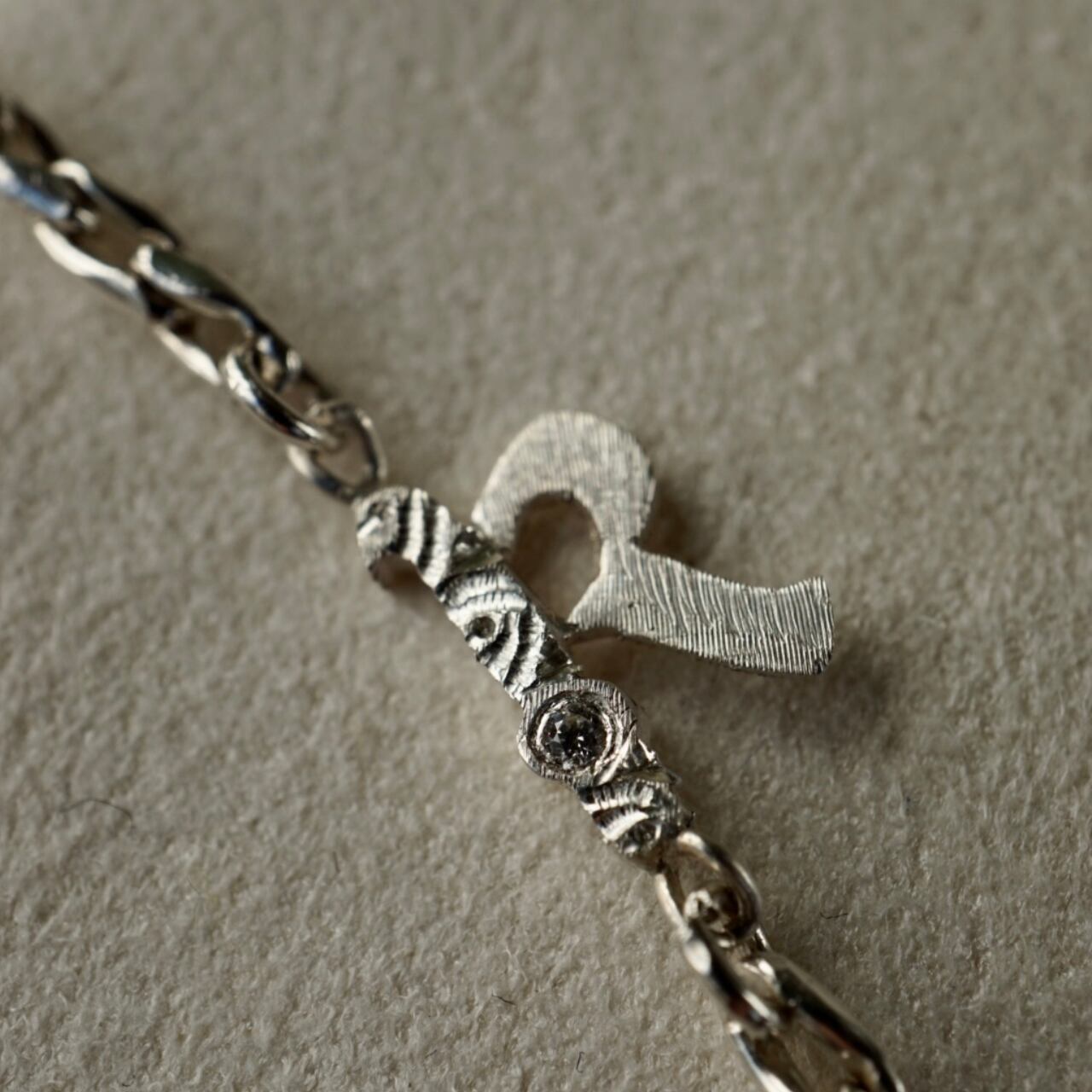 また、イニシャルとチェーンが自然に馴染むようデザインされており、主張しすぎないさりげなさ。