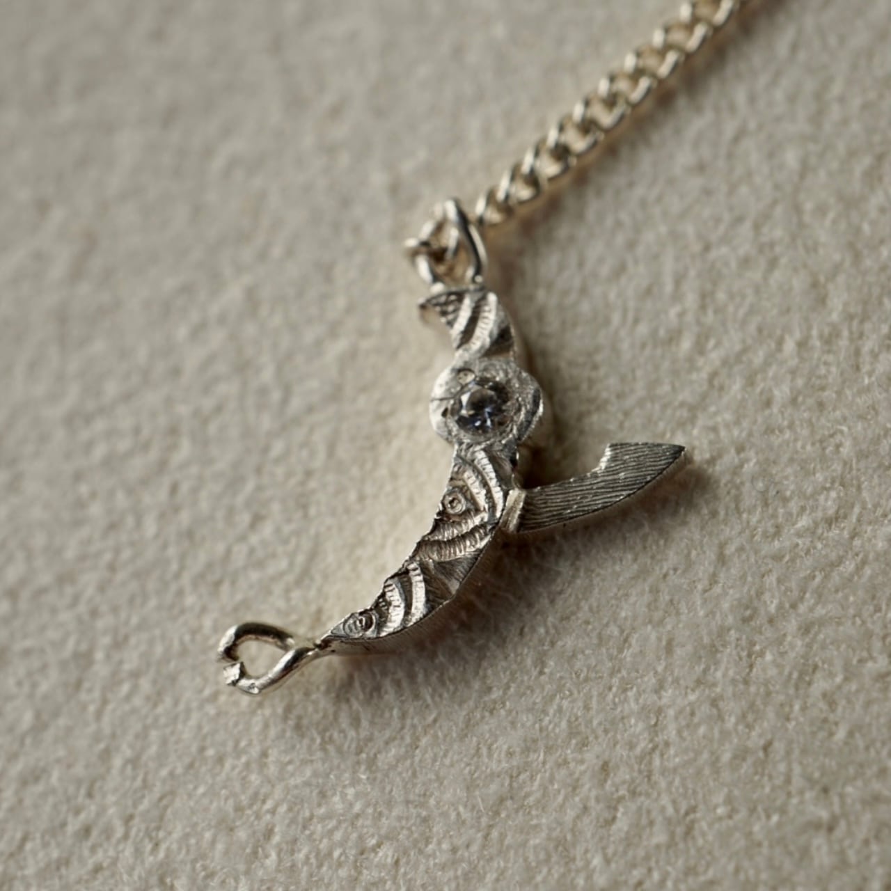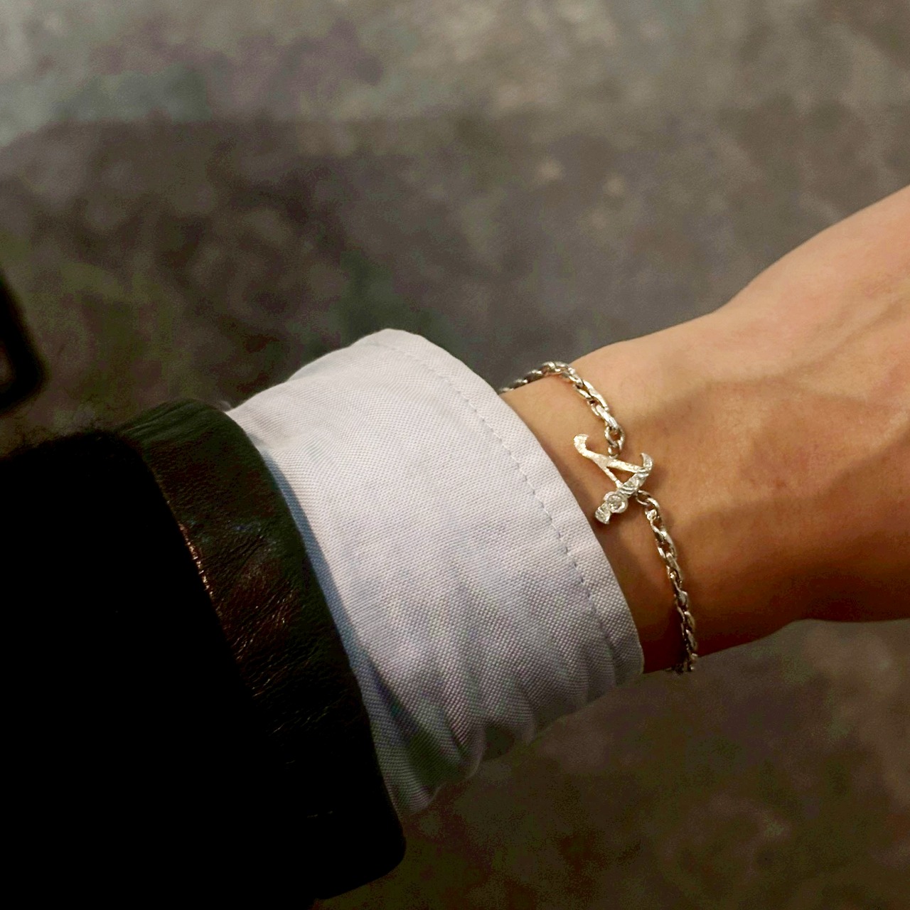また、イニシャルとチェーンが自然に馴染むようデザインされており、主張しすぎないさりげなさ。