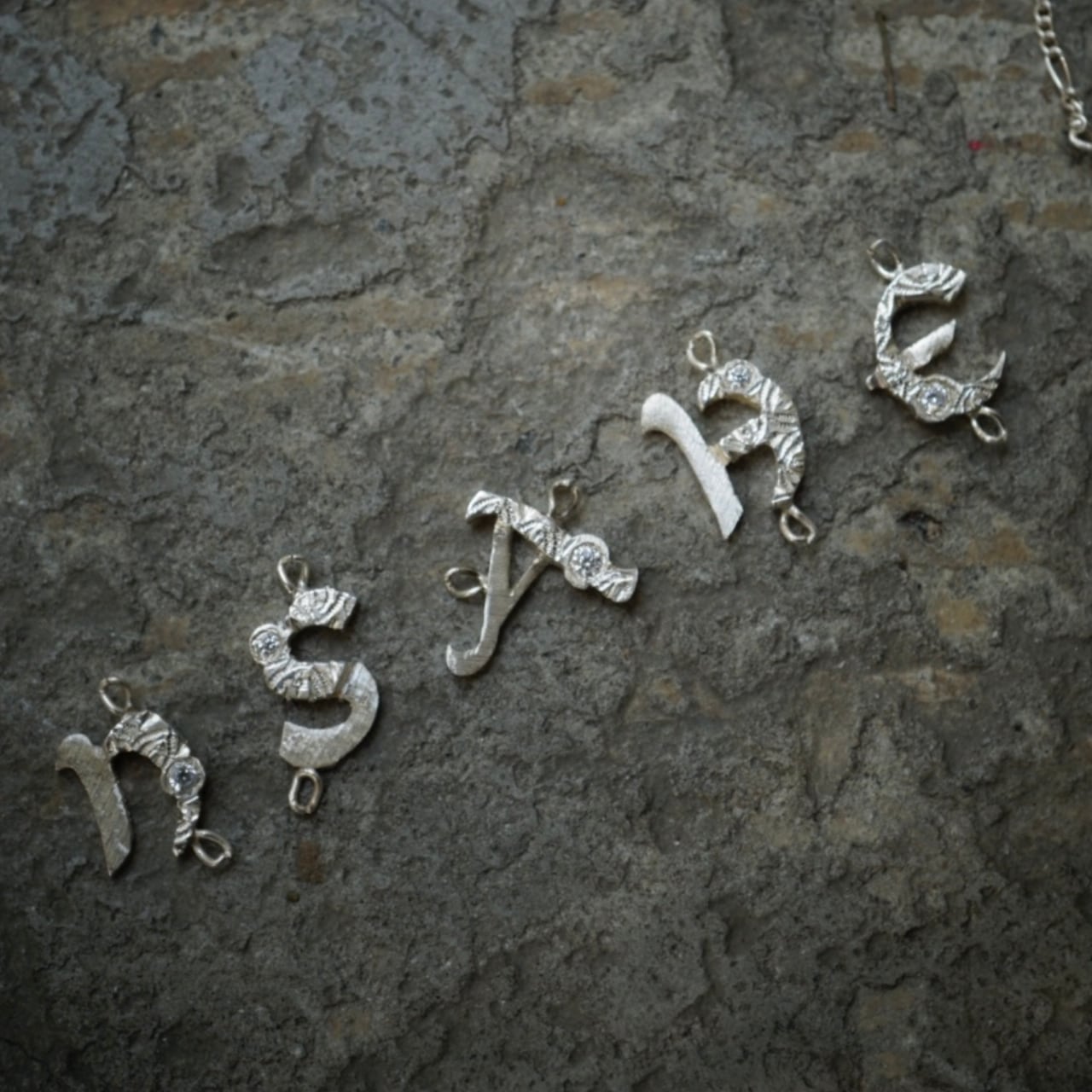 CBが一つひとつ丁寧に切り出した“イタリアカリグラフィー”のイニシャルに、SIENANOが立体感のあるフィレンツェ彫りと石をセット。