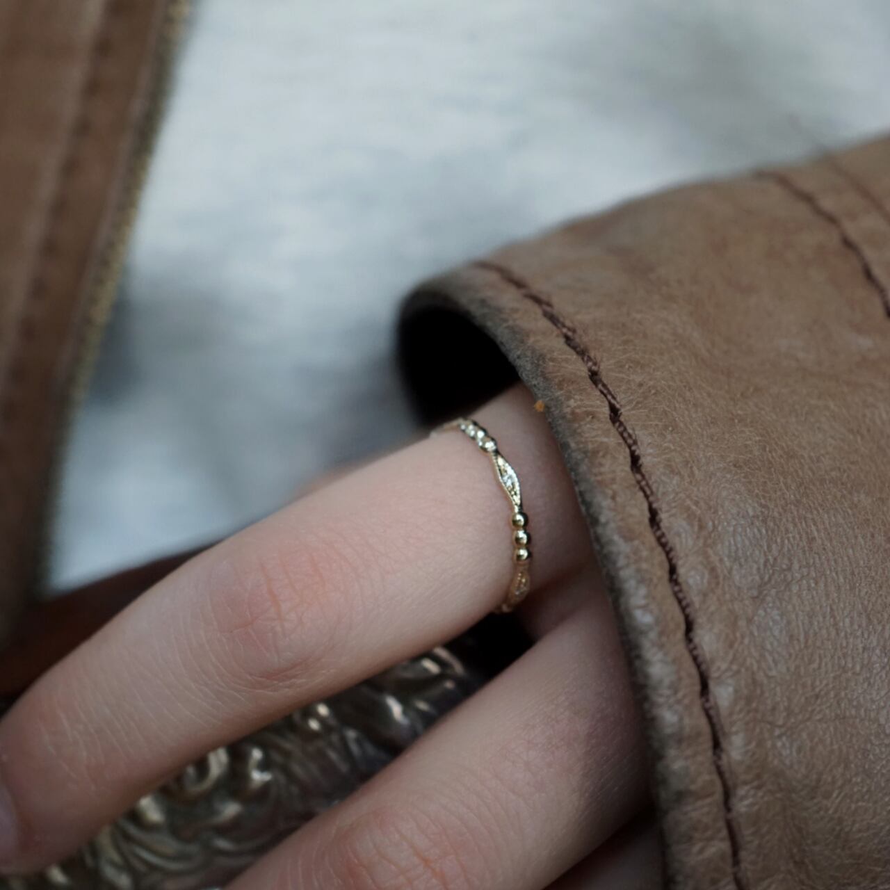 当店では手彫りによる煌めきが保てるK18YGと肌馴染みが良く傷がつきにくいK10KYGを採用しております。