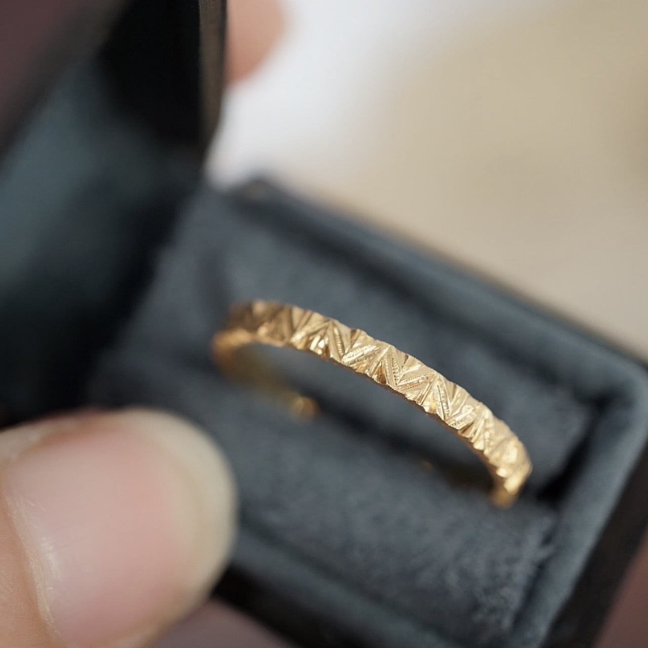 当店では手彫りによる煌めきが保てるK18YGと肌馴染みが良く傷がつきにくいK10YGを採用しております。