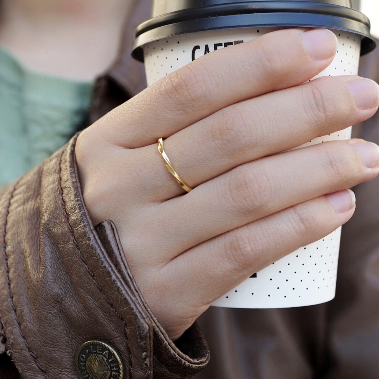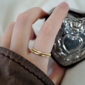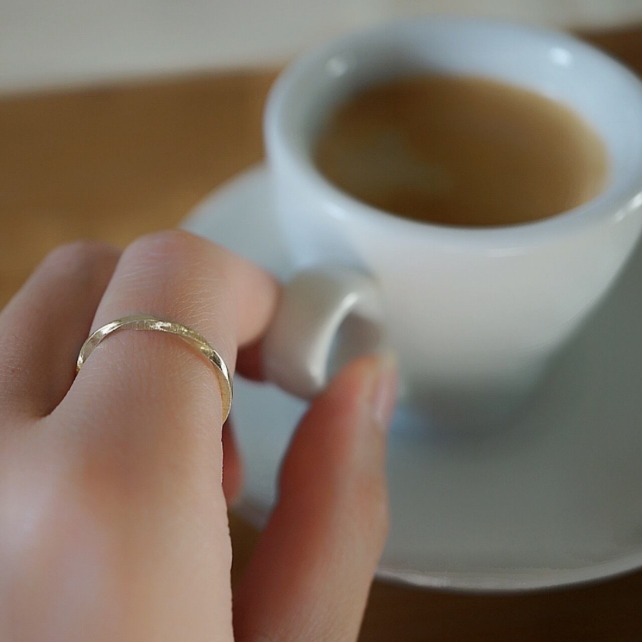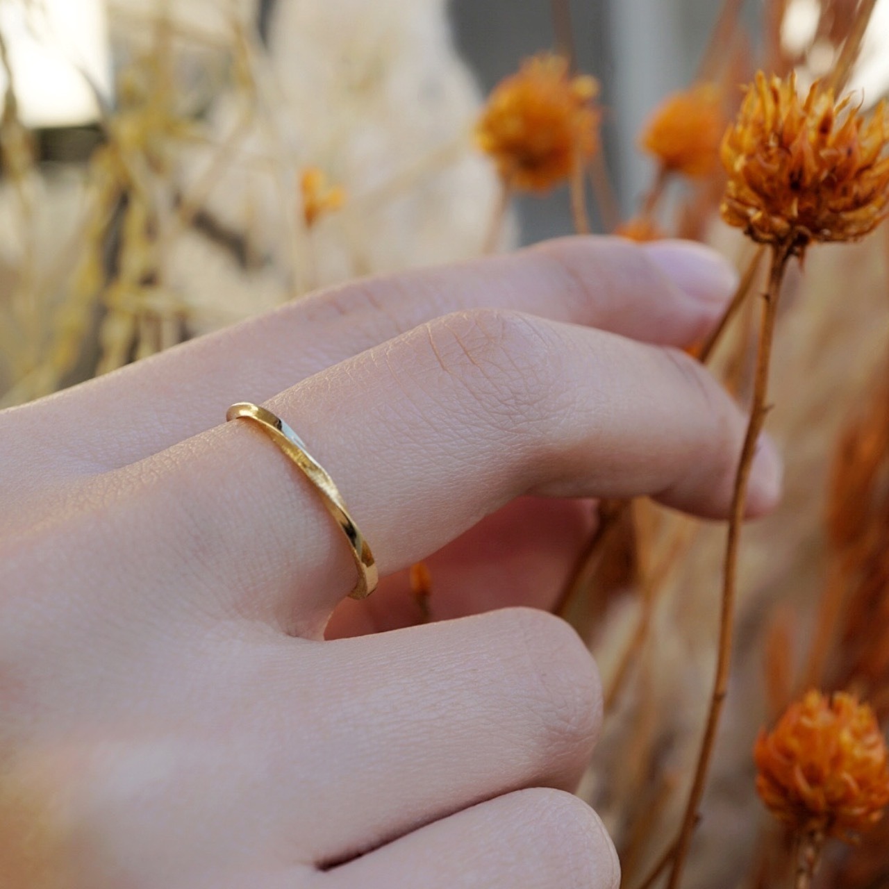 鏡面と絹のような彫りで仕上げ、大聖堂の柱の輝きをそのまま指元に閉じ込めたように仕上げました。