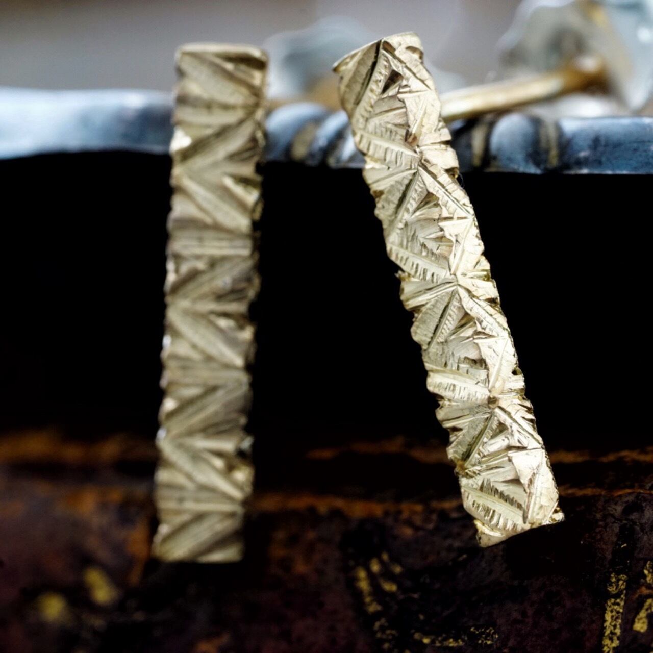 1つ1つ手で彫り込むことで金属の表面が光を反射し、
