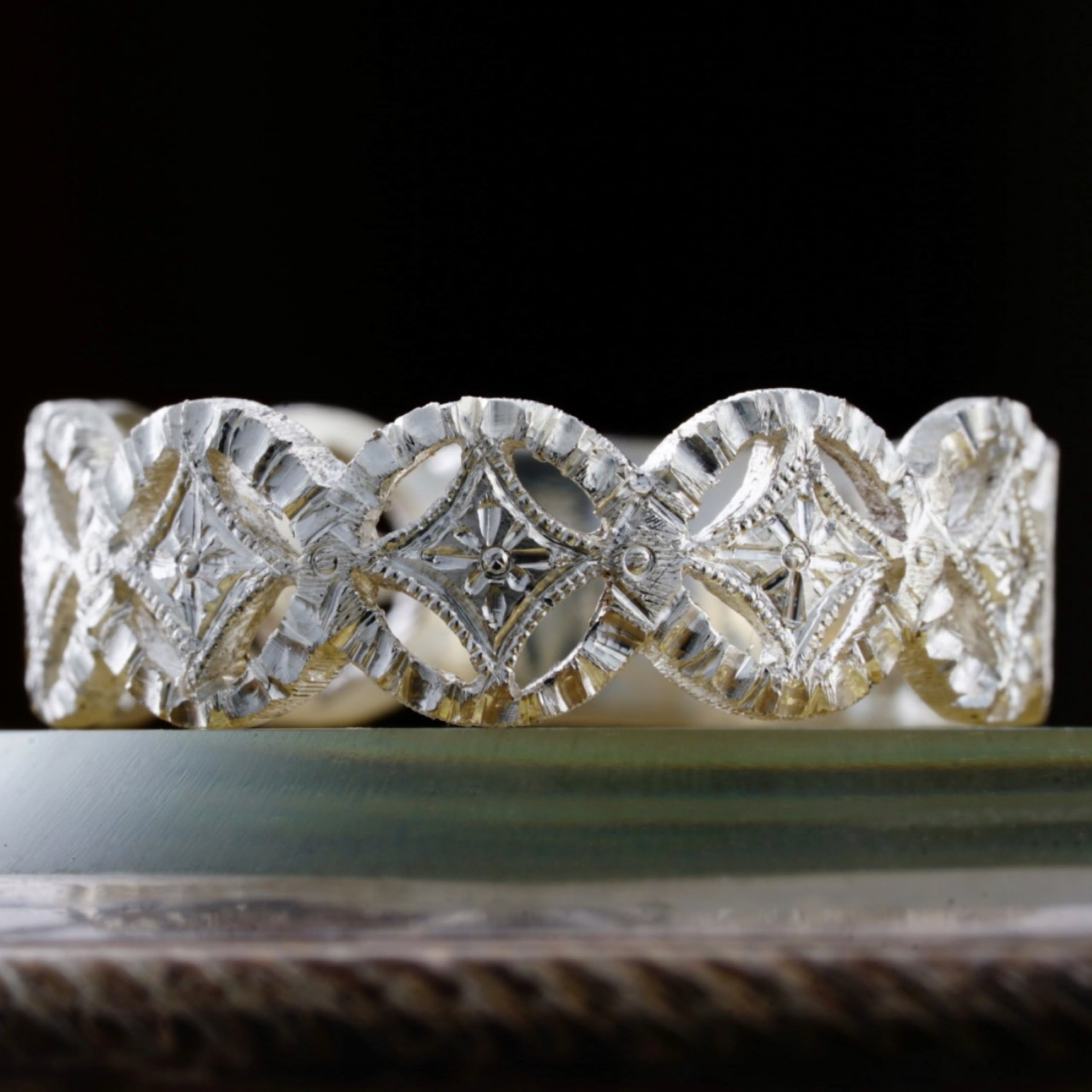 また、どちらもフィレンツェ彫りによる輝きをより長く楽しんで頂くため、ロジウムコーティングを施しております。