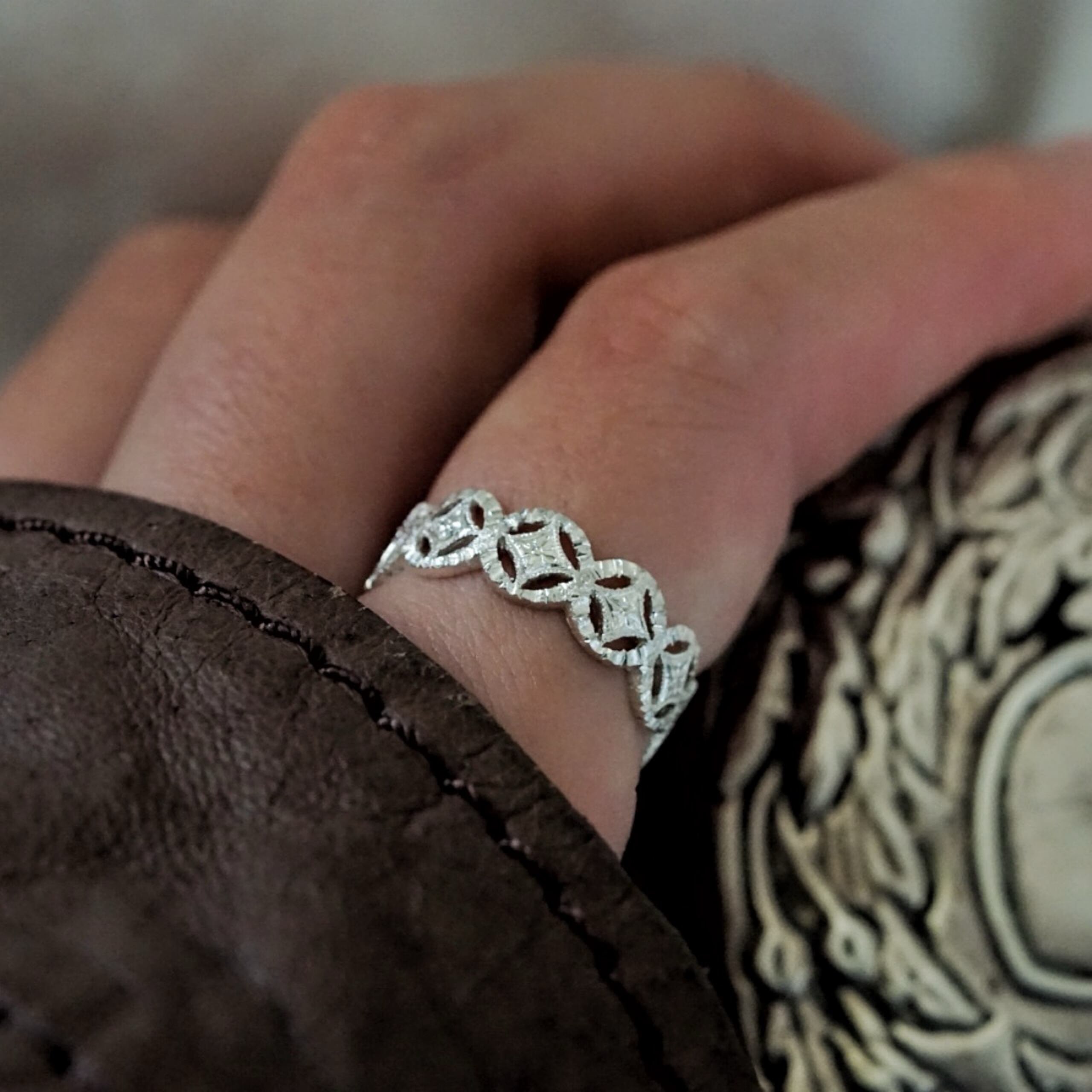 ※幅広の為通常リング(約3mm着用時)1号UPのサイズがおすすめです。