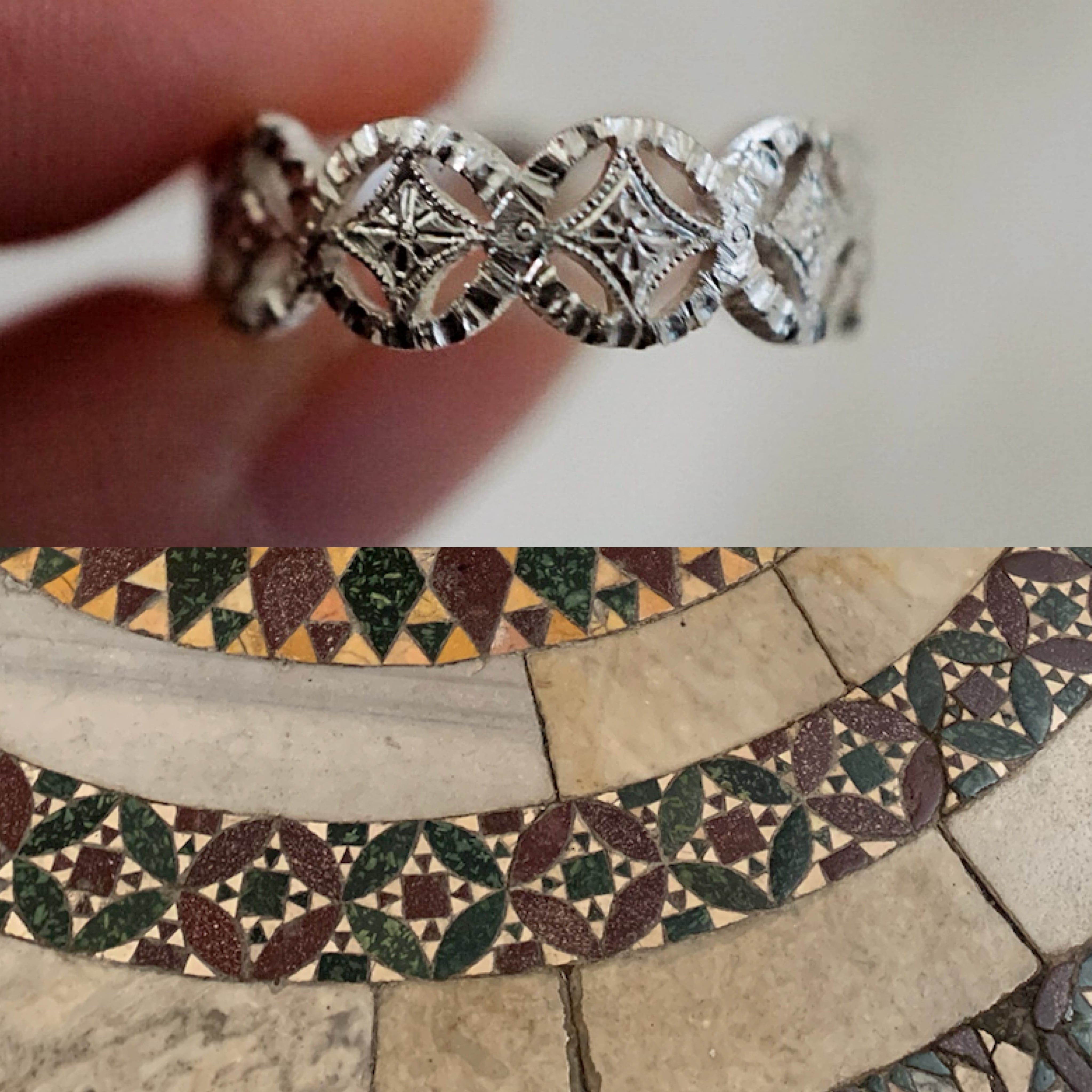 あの教会で見上げた天井や、輝くモザイクを思いだしながら、1つ1つ手作業で透かし、彫りを施しています。