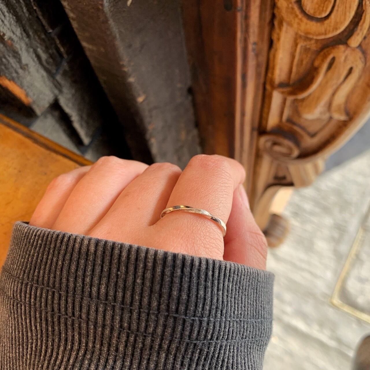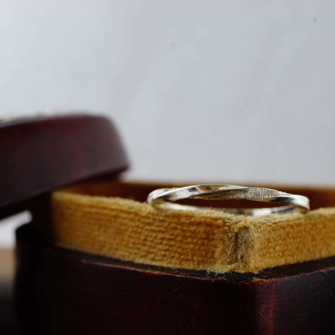 鏡面と絹のような彫りで仕上げ、大聖堂の柱の輝きをそのまま指元に閉じ込めたように仕上げました。